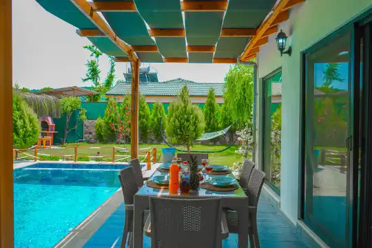 Villa Güzellik 2, Fethiye'nin Kayaköy mevkiinde konumlanmış olup, doğa içerisinde geniş bahçe ve havuz terasına sahiptir. Özellikle çocuklu aileler tarafından tercih edilen villamız, çocuk havuzuna sahiptir. 2 yatak odası ve 4 kişi konaklama kapasitesi ile muhafazakar aileler ve arkadaş grupları için ideal bir kiralık tatil villasıdır.