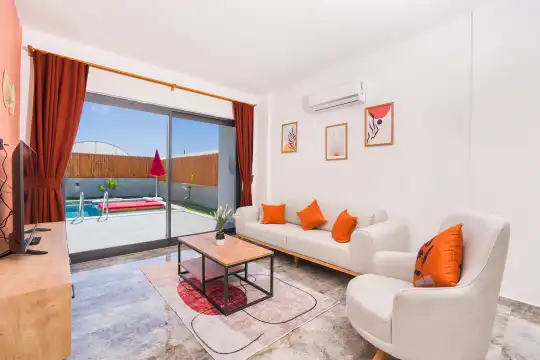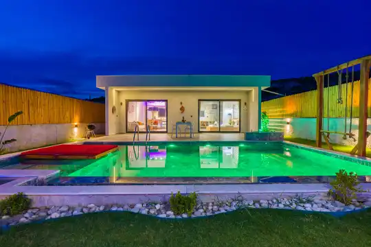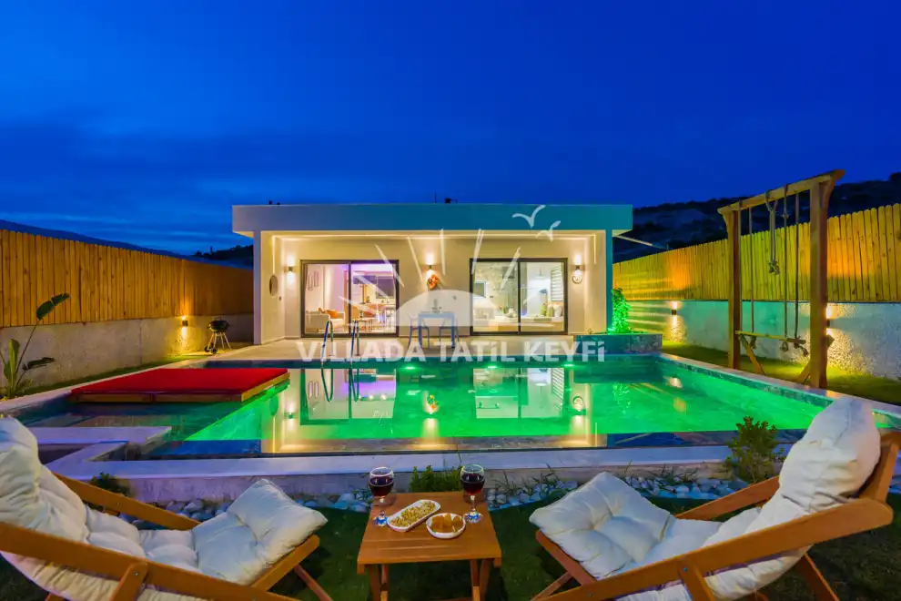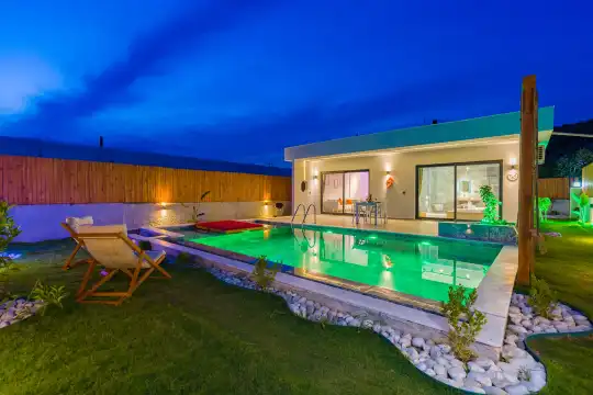 Seydikemer Kumluova'da doğa içerisinde konumlu olup, tek yatak odalı ve 2 kişi konaklama kapasiteli özel havuzlu bir villadır. Balayı çiftleri için oldukça ideal jakuzili kiralık tatil villasıdır. Havuz terası dışarıdan gözükmemektedir.