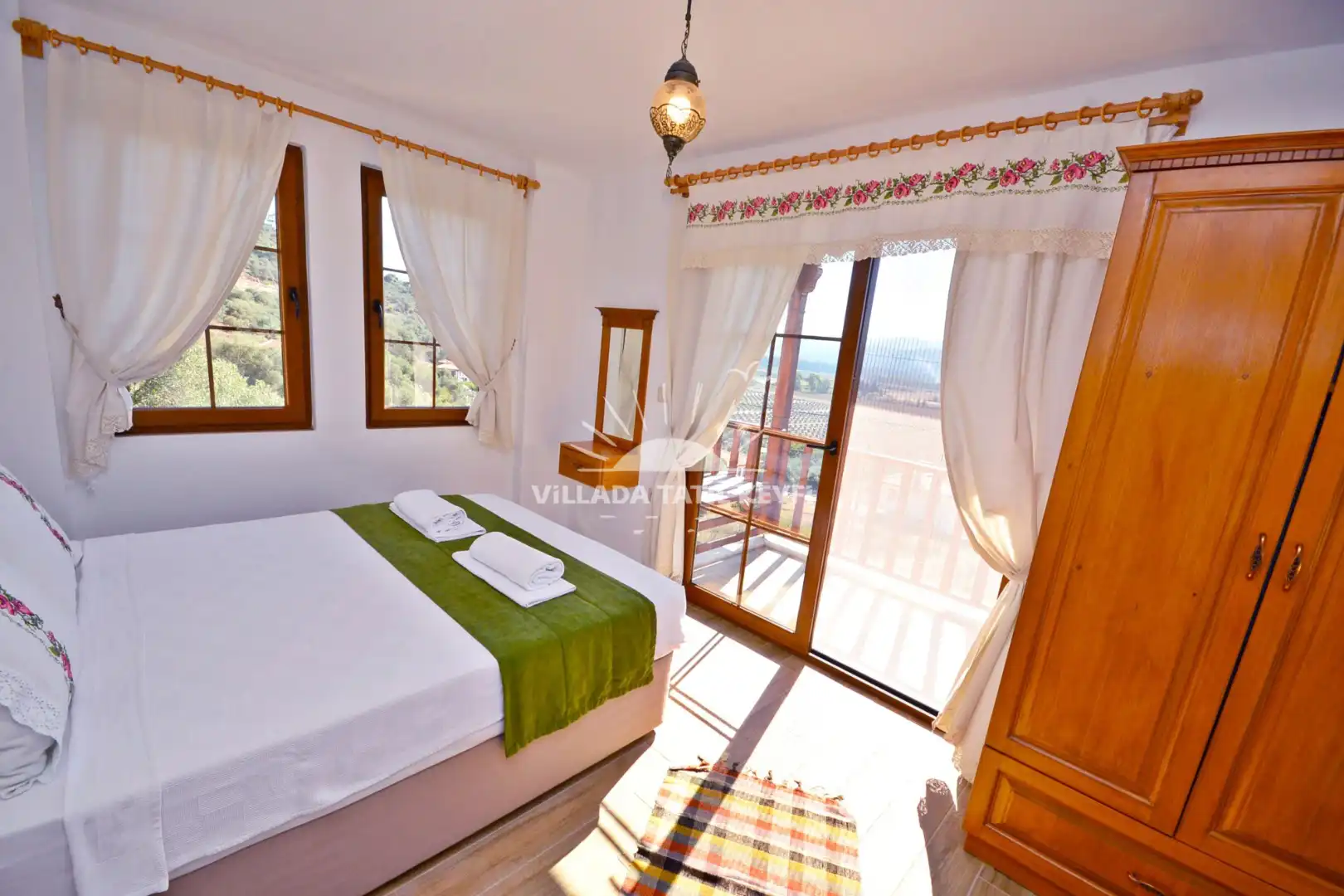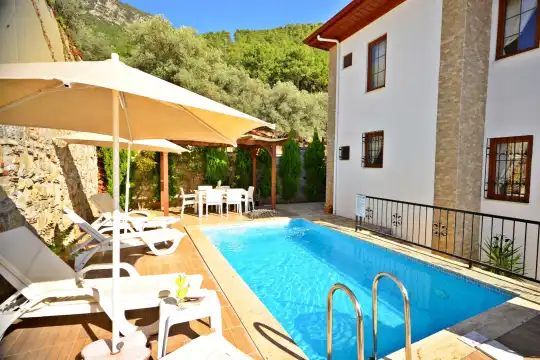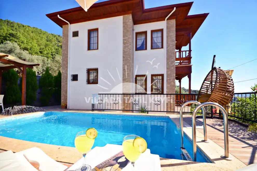 Gökova Akyaka beldesinde doğa içerisinde konumlu bulunan Villa Deniz 2, ahşap mimari ile dekore edilmiş sedirler, dantel objeler ve kaneviçeler kullanılarak kendine has bir konsepte sahip kiralık tatil villamızdır. İçerisinde 3 adet yatak odası bulunan villamız 6 kişi konaklama kapasitesine sahiptir. Villamızın havuz terası dışarıdan görünmediği için muhafazakar misafirlerimiz rahatlıkla konaklayabilmektedirler. Villamız Akyaka Plajına 3 km mesafede yer almaktadır. Şehrin gürültüsünden uzak yeşillikler içinde sakin bir tatil arzu edenler için ideal villa seçenekeleri arasındadır.