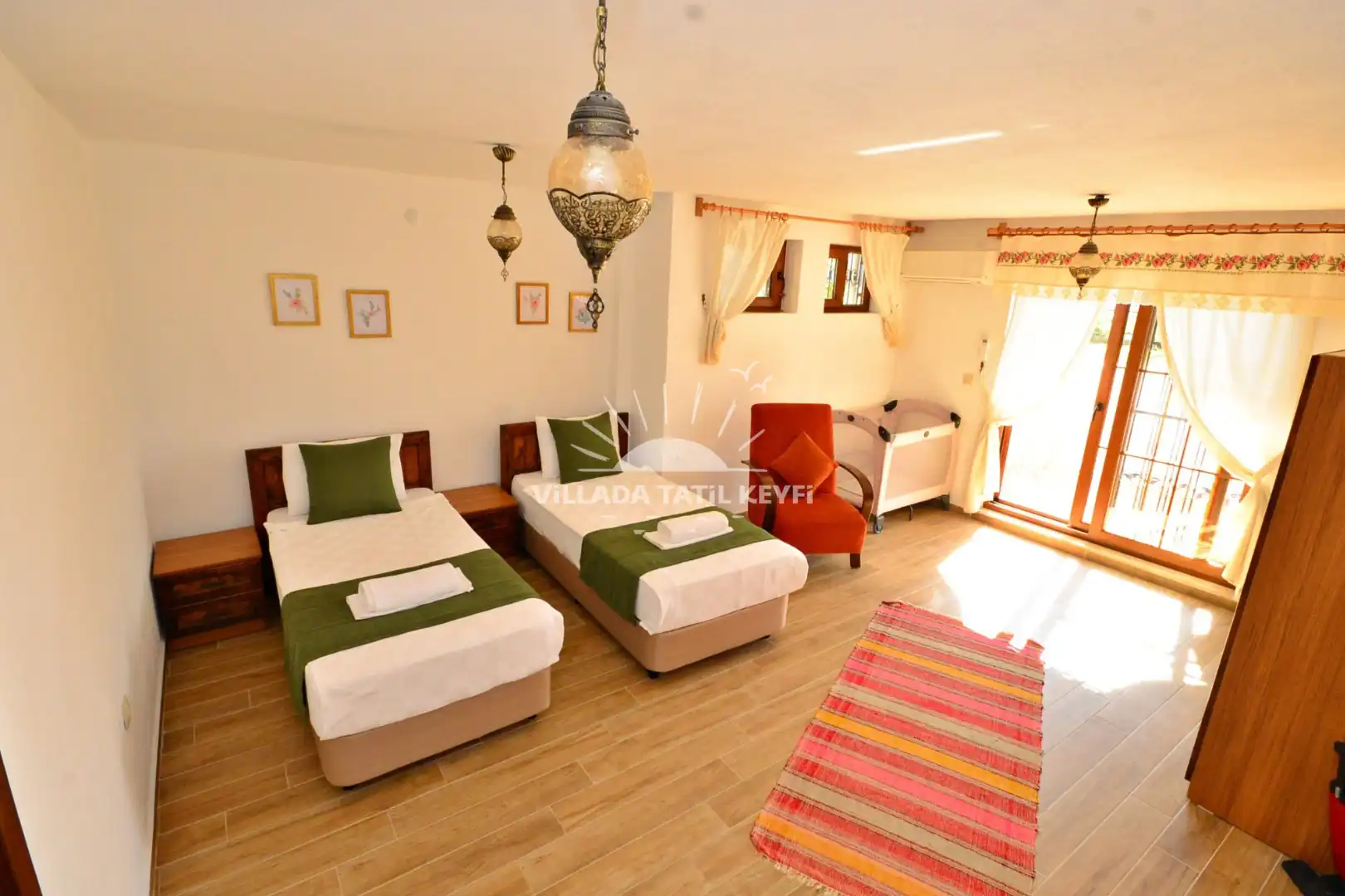 3. Yatak Odası 2 tek kişilik yatak + elbise dolabı + komidin + ortak banyo