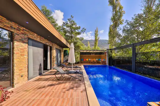Kalkan'ın İslamlar mevkiinde yer alan Villa Florya, panoramik orman manzaralı, 1 yatak odasına sahip harika bir tatil villasıdır. Jakuzili suit yatak odası ve korunaklı havuzuyla dikkat çeken bu villa, etrafından kesinlikle görünmemektedir. Ayrıca sinema odası ve langırt masasıyla keyifli vakitler geçirebilirsiniz. Tek katlı ve korunaklı havuzu ile balayı çiftleri ve muhafazakar tatilciler için ideal bir seçenektir.