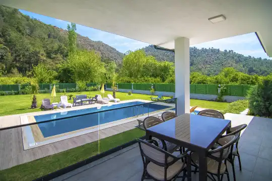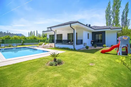 Dalaman merkezinde, Ege ve Akdeniz'in birleştiği noktada yer alan Villa Tarabya, geniş bahçe ve havuz terasına sahiptir ve 9 kişiye kadar konaklama imkanı sunar. 4 yatak odası bulunmaktadır. Villada yetişkin ve çocuk havuzu ile mini oyun parkı mevcuttur. Ayrıca, Dalaman Havalimanı'na yakınlığı ile avantajlı bir konuma sahiptir. Yaklaşık 12 km uzaklıkta, misafirlere altın rengi kumsalları ve tarihi yapılarıyla eşsiz bir tatil imkanı sunan Sarıgerme Plajı bulunmaktadır.