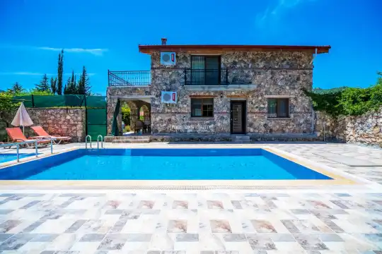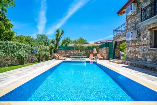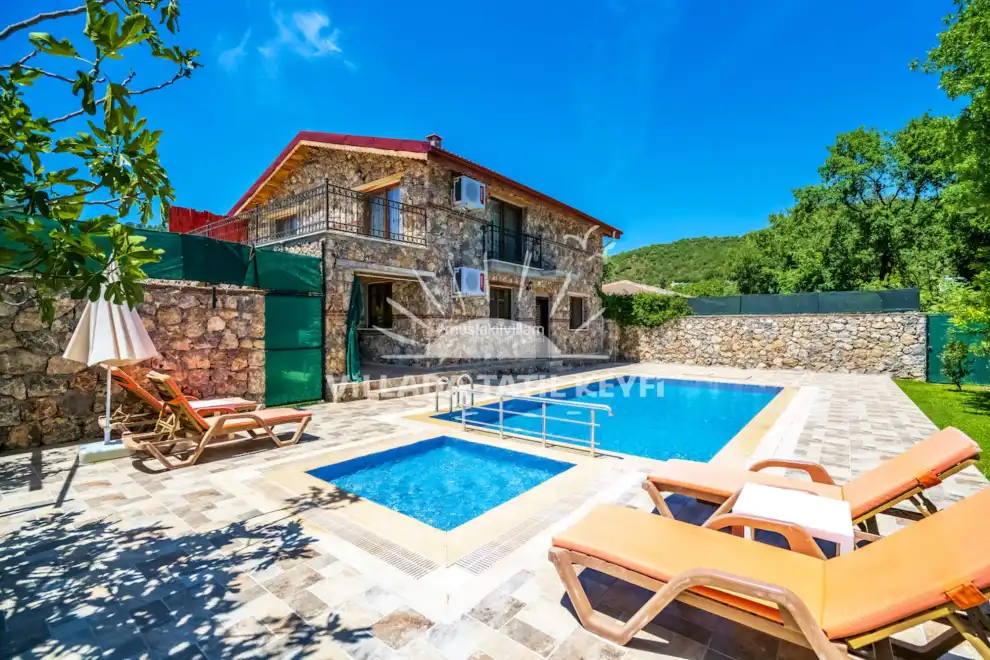 Eski çağlarda Rumlara ev sahipliği yapan Kayaköy, doğal güzellikleri ve tarihi yapısı ile tatil için oldukça ideal bir bölgedir. Fethiye şehir merkezine, Ölüdeniz ve Gemiler Plajına yakın konumu ile ulaşım için de güzel bir lokasyona sahiptir. Otantik taş mimariye sahip olan Villa Şato, 4 yatak odalı 8 kişi konaklama kapasiteli havuzu ve havuz terası korunaklı dışarıdan görünmeyen jakuzili muhafazakar kiralık tatil villasıdır. Sessiz sakin konumu doğa içinde köy havasında tatilin keyfini çıkarabileceğiniz eşsiz bir villa seçeneğidir. Villamızın hemen yanında aynı konseptte yer alan Villa Meltem Villa Mine ve Villa Eda yer almaktadır. Bu 4 villamız aynı anda kiralama imkanı ile toplamda 20 kişi konaklama kapasitesine sahiptir.