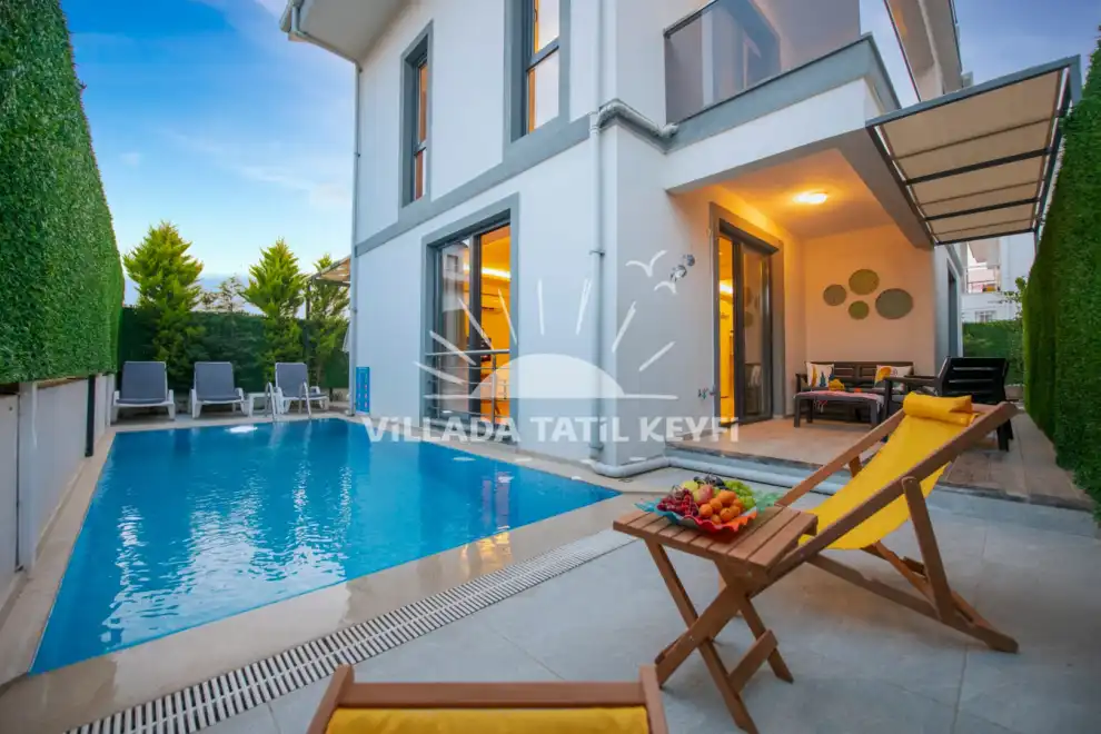 Villa Alp İnn, Fethiye'nin merkezi konumlarından biri olan Çatalarık mevkiinde yer almaktadır. 4 yatak odası ve 8 kişilik konaklama kapasitesiyle geniş aileler ve kalabalık arkadaş grupları için ideal bir tatil villasıdır. Açık mutfak ve salon alanı, modern yaşam alanlarıyla birleşerek ferah ve konforlu bir atmosfer sunar. Özel yüzme havuzu ve güneşlenme terası bulunan Villa Alp İnn, denize yakınlığı sayesinde hem şehir merkezine hem de plaja kolay ulaşım imkanı sağlar. Çalış Plajı'na yalnızca 3,5 km mesafede bulunan villa, konum avantajıyla da öne çıkmaktadır.