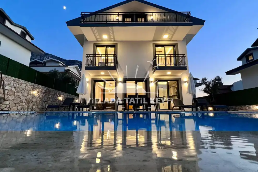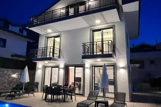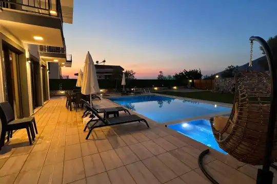 Fethiye Ovacık mevkiinde bulunan Villa Aşık, 4 yatak odası ve 8 kişilik konaklama kapasitesiyle ideal bir seçenektir. Villanın yatak odası ebeveyn odasına sahiptir ve bir oda jakuzisi bulunmaktadır. Özel havuzlu villada ayrıca havuzda bir jakuzi bulunmaktadır. Şık ve modern tasarımıyla geniş ailelerin konaklayabileceği bir ortam sunuyor.