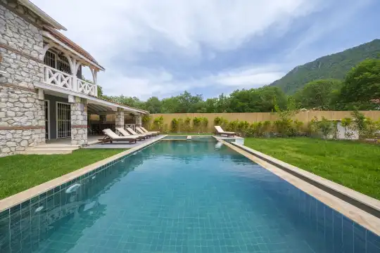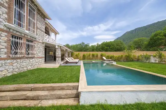 Tarihi Fethiye Kayaköy'de bulunan, 3 yatak odalı ve 6 kişilik kapasiteye sahip olan bu muhafazakar tatil villaları, korunaklı odası ile dikkat çekiyor. Müstakil havuzlu ve geniş bahçeli villamız, mangal partileri düzenlenebilecek ve yararlanabileceğiniz çıkarabileceğiniz bir tatil deneyimi sunuyor.