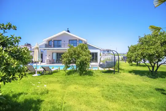Fethiye Kargı mevkiinde konumlu lüks villamız 3 yatak odalı ve 6 kişilik konaklama kapasitelidir. Geniş ve ferah yapıya sahip villamız açık plan salon mutfağı şeklinde tasarlanmıştır. Geniş Bahçe terasına sahip jakuzili özel yüzme havuzlu villamız geniş aileler için ideal kiralık lüks tatil villa seçeneğidir.