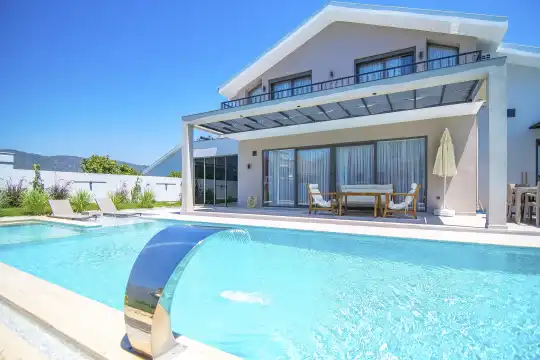 Fethiye Kargı mevkiinde konumlu lüks villamız 3 yatak odalı ve 6 kişilik konaklama imkanıdır. Geniş ve ferah yapıya sahip villamız açık plan salon mutfağı şeklinde tasarlanmıştır. Geniş Bahçe terasına sahip jakuzili özel yüzme havuzlu villamız geniş aileler için ideal kiralık lüks tatil villa seçeneğidir.