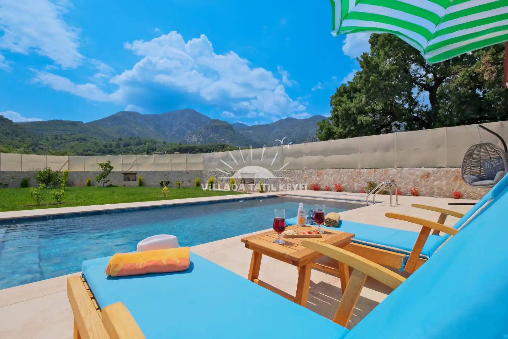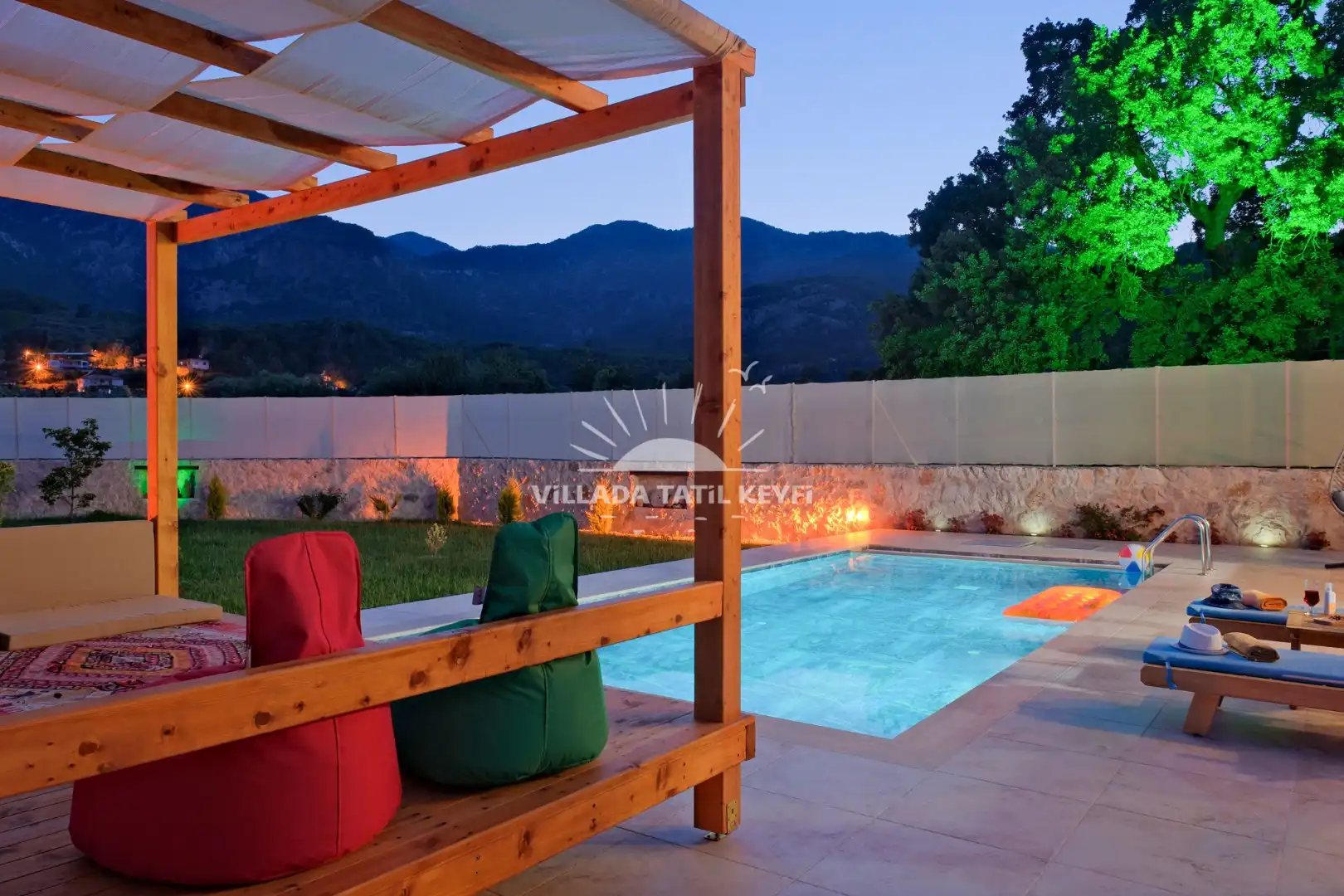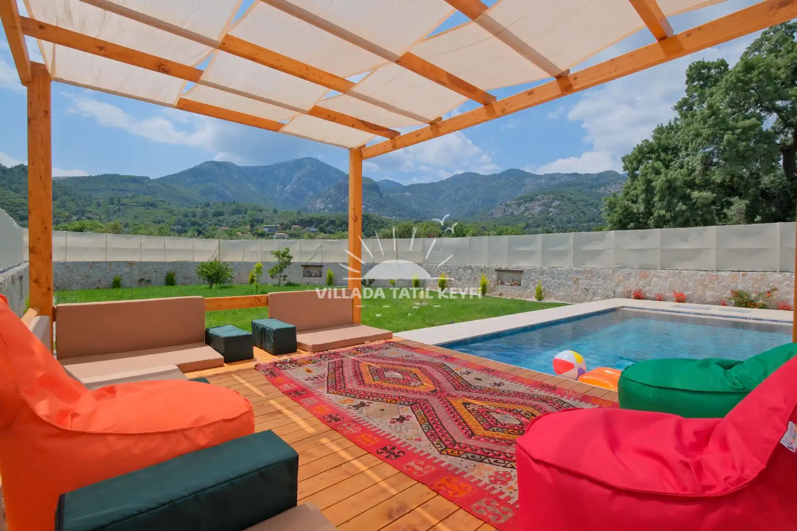 Bölge ve Özellikler: Seydikemer'in doğal güzelliklerine sahip Minare Köyü'nde bulunan villa, sessiz sakin bir ortam sunar.