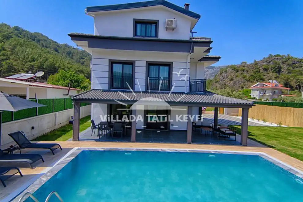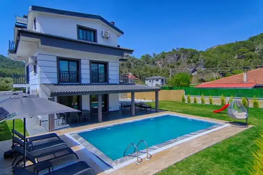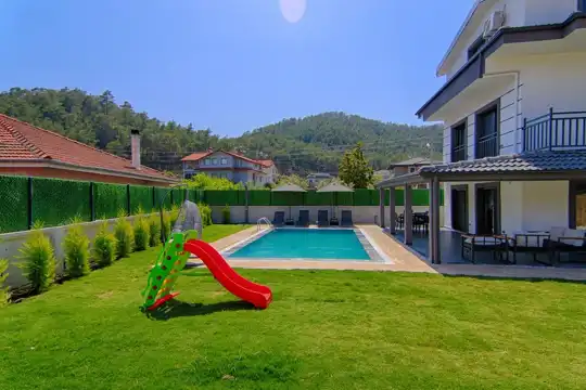 Göcek İnlice'de doğa içerisinde bulunan Villa Songül Sultan, 5 yatak odası ve 10 kişilik konaklama kapasitesine sahip geniş bir tatil villasıdır. Özel havuzu ve geniş bahçe terası ile büyük aileler ve arkadaş grupları için ideal bir seçenektir.