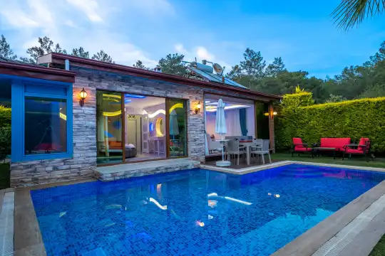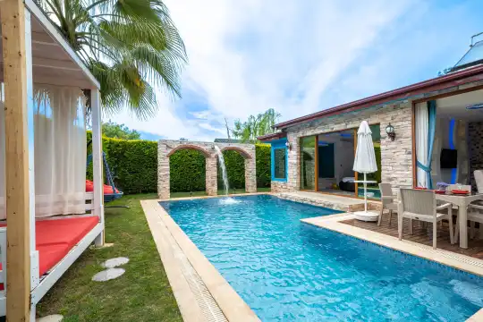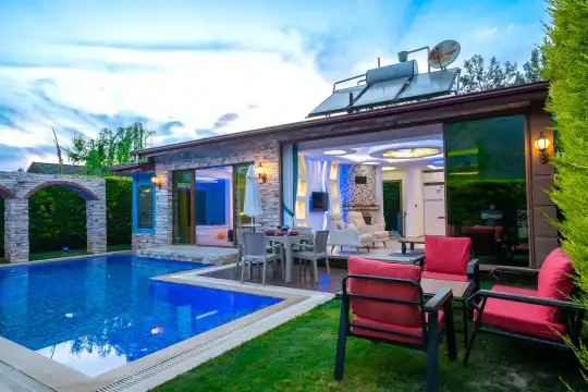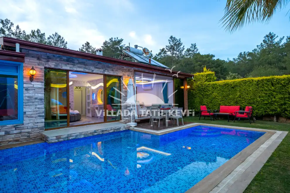 Muhafazakar yapısı sayesinde gözlerden uzak, size özel bir tatil imkânı sunan Villa Terra Doruk, doğayla iç içe olmayı seven çiftler için ideal bir seçimdir.