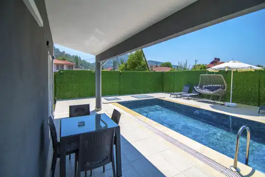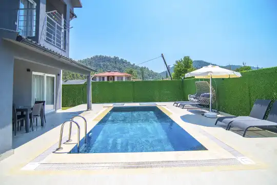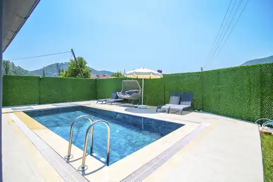 NOT: Doğa içerisinde konumlu tüm villa ve yazlıklarda kelebek, böcek, karınca, sinek vs. çıkma ihtimali vardır. Buna karşı düzenli olarak ilaçlanmaktadır. Bu not, bu ev ile ilgili olmayıp doğa içerisinde konumlu tüm evlerimiz için geçerlidir.