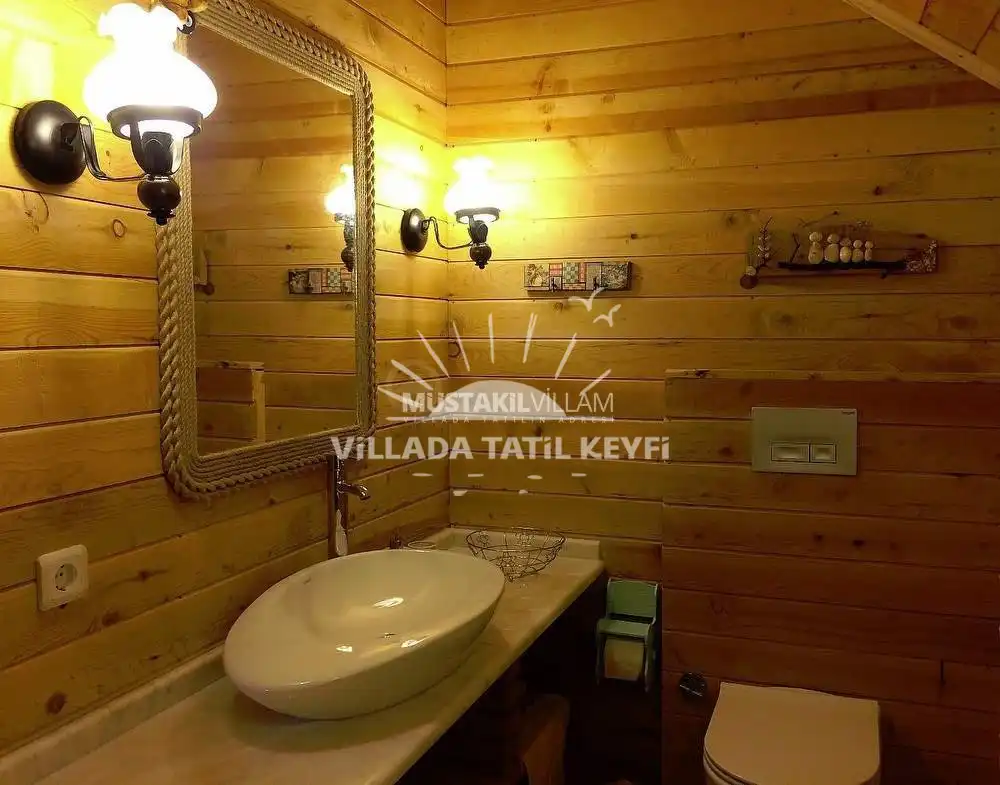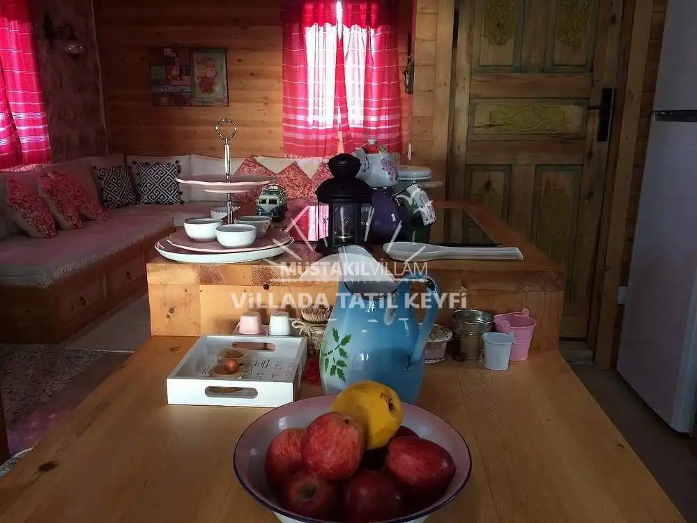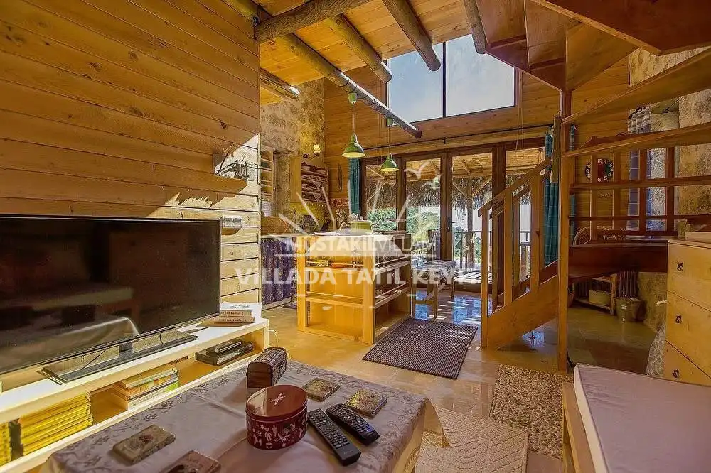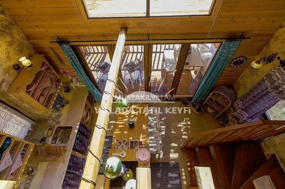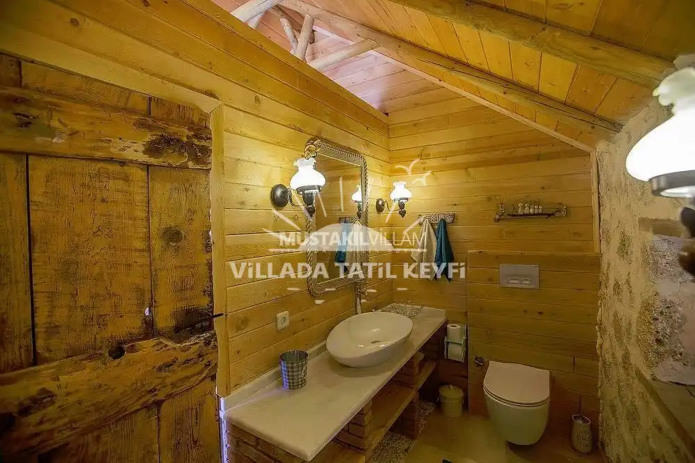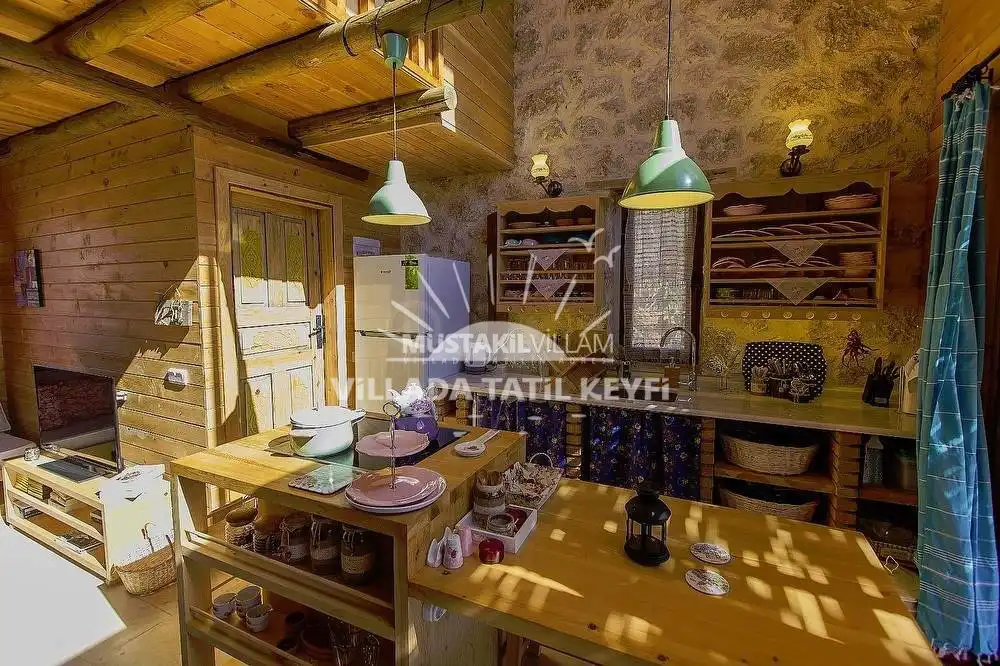 Tamamı ceviz ağacı kullanılarak inşa edilen villa, doğal dokusu ve sıcak atmosferiyle standart villa konseptinden ayrılmaktadır. Şehir hayatının yoğunluğundan uzak, tamamen size ait özel bir yaşam alanında konforlu ve huzurlu bir tatil imkânı sağlar.