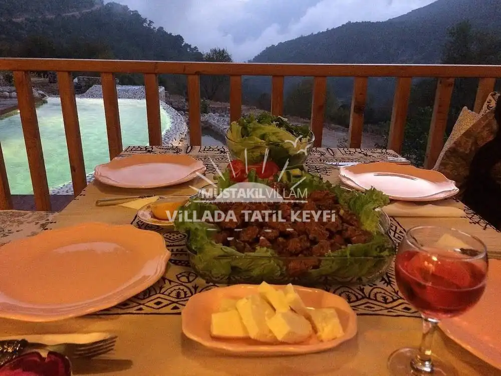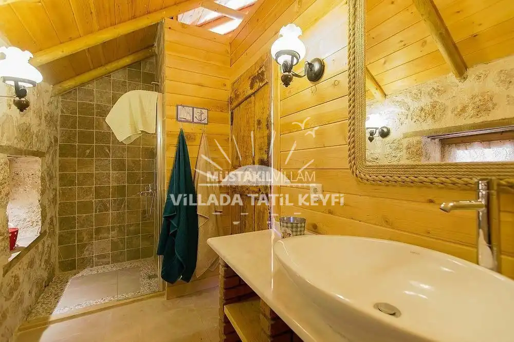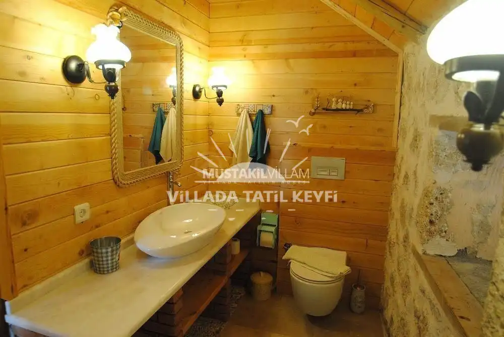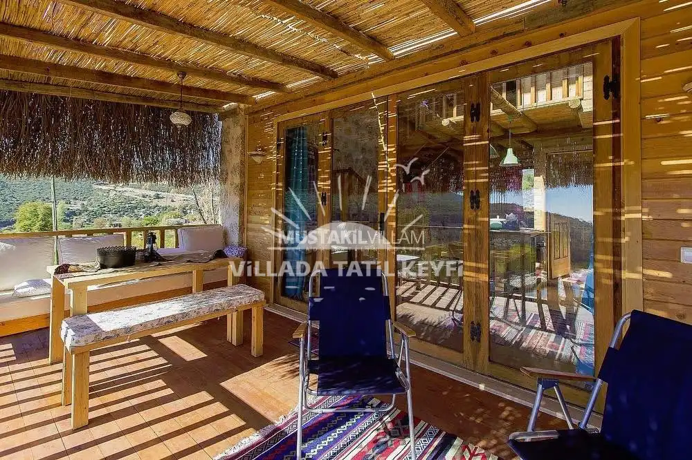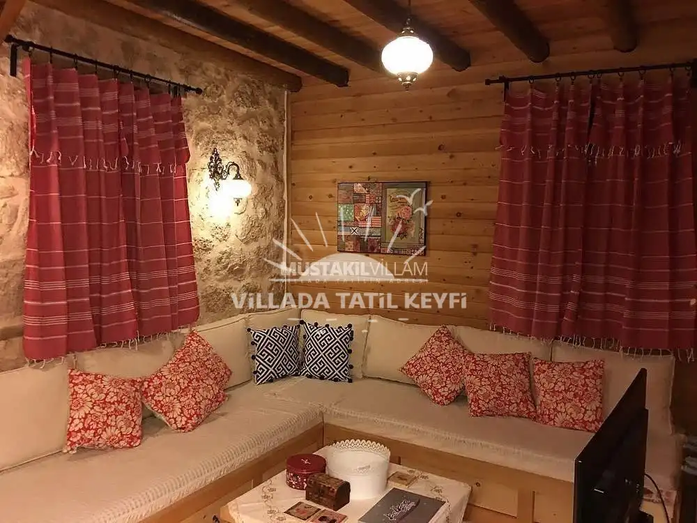 Tamamı ceviz ağacı kullanılarak inşa edilen villa, doğal dokusu ve sıcak atmosferiyle standart villa konseptinden ayrılmaktadır. Şehir hayatının yoğunluğundan uzak, tamamen size ait özel bir yaşam alanında konforlu ve huzurlu bir tatil imkânı sağlar.