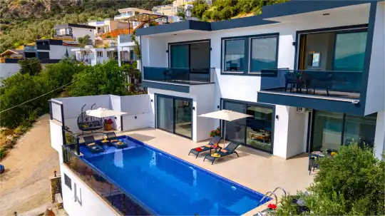 Villa Alba Lux, Kalkan’ın Kördere mevkiinde konumlanan, deniz manzarasına hâkim ve lüks detaylarla donatılmış 4 kişilik konaklama kapasiteli özel bir kiralık villadır. Korunaklı özel havuzu, jakuzili ebeveyn odası ve kapalı iç havuzu ile özellikle balayı çiftleri ve çekirdek aileler için ideal bir tatil seçeneği sunar.