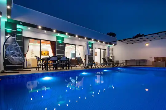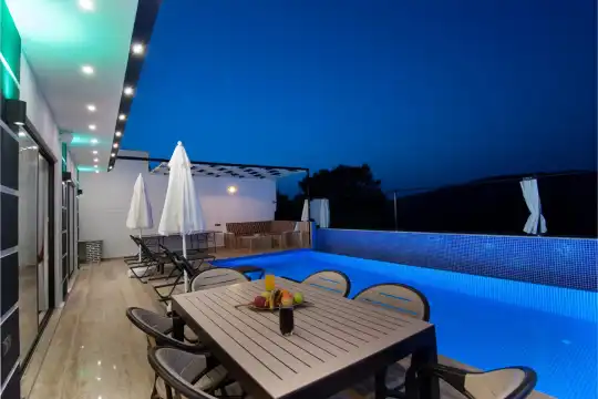 Villa Anemon 4, Kalkan Akbel'de konumlu kiralık bir villa seçeneğidir. Doğanın içinde sessiz ve sakin bir konumda bulunan villamız, 2 yatak odasıyla 4 kişi konaklama kapasitesine sahiptir. Havuz alanı korunaklı olan villamız, muhafazakar aileler ve balayı çiftleri için ideal bir seçenektir. Korunaklı açık havuz ve kapalı iç havuz, yaz kış keyifli bir tatil sunar. Kapalı ısıtmalı havuzu ve ebeveyn yatak odasında bulunan jakuzisi ile misafirlerini en iyi şekilde karşılamaya hazırdır.