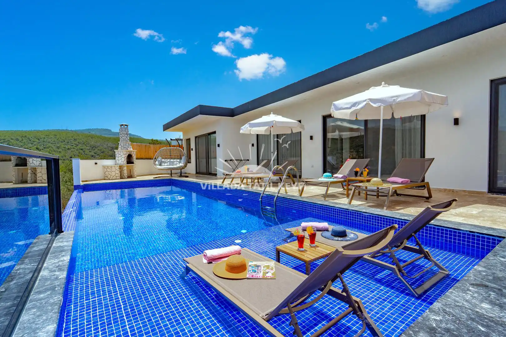 Özel Havuz & Şezlonglar: Villa, özel havuz ve şezlonglarla donatılmıştır. Ayrıca sığ havuz bulunmaktadır: