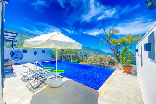 İslamlar Kalkan'da konumlu olan Villa Irmak, panoramik deniz ve doğa manzarasına hakimdir. 1 yatak odasıyla 2 kişi kapasiteli olan villa, lüks ve konforlu bir tasarıma sahiptir. Havuz terası korunaklıdır, bu nedenle muhafazakar aileler için ideal bir seçenektir. Sauna ve jakuzi gibi özellikleriyle tatilinizi her mevsimde keyifle geçirebilirsiniz.