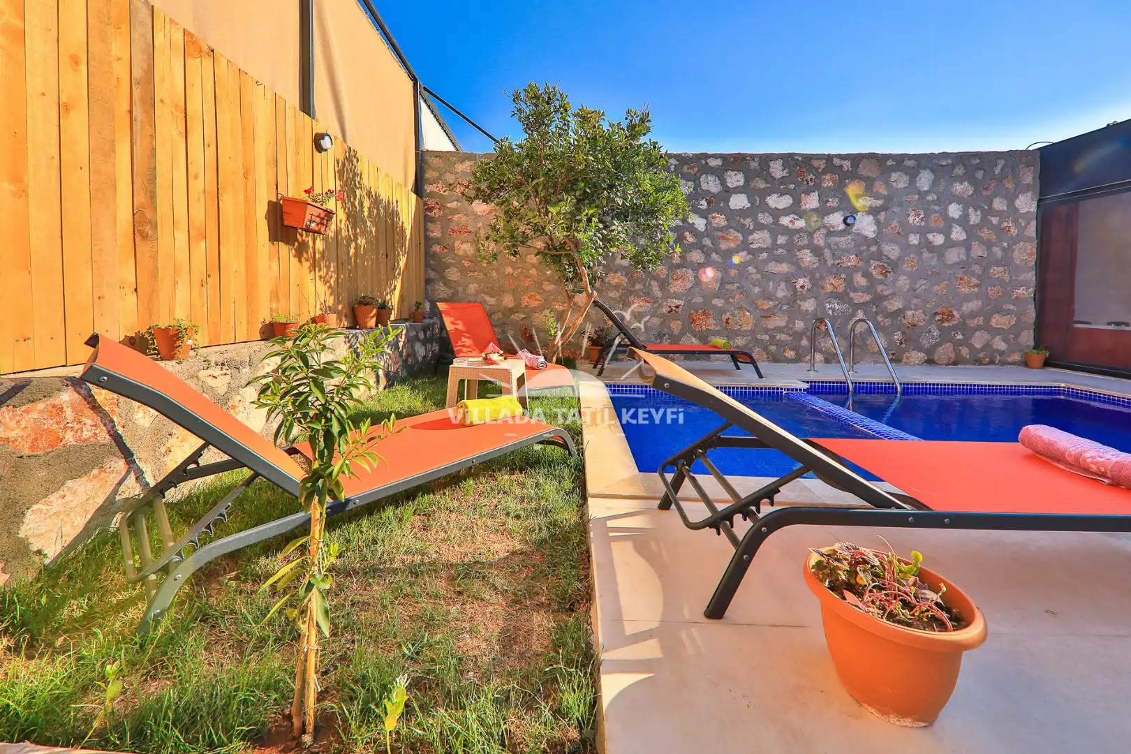 Villa Portakal Çiçek 2, Antalya'nın doğayla iç içe ve huzurlu atmosferiyle öne çıkan Kalkan Patara bölgesinde konumlanmıştır. 2 yatak odalı ve 4 kişi konaklama kapasiteli olan bu özel villa, çekirdek aileler ve balayı çiftleri için son derece idealdir. Korunaklı bahçesi ve özel havuz terasıyla dikkat çeken villamız, keyifli ve mahremiyetin ön planda olduğu bir tatil fırsatı sunar. Her iki yatak odasında da jakuzili ebeveyn banyosu bulunmakta olup, misafirlerine konforlu ve lüks bir konaklama deneyimi vaat eder.
