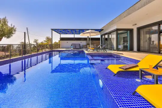 Kalkan'ın İslamlar beldesinde doğa içerisinde konumlanan Villa Tayyar, 2 yatak odasıyla 4 kişi konaklama kapasitesine sahiptir. Villamız özel yüzme havuzuna sahip olup, havuz terası korunaklı bir yapıya sahiptir. İçerisinde hamam, sauna ve kapalı havuz bulunan villamız, yaz-kış tatil yapmak isteyen misafirlerimiz için oldukça idealdir. Bahçe terasında yer alan langırt ise keyifli vakit geçirmenizi sağlar.