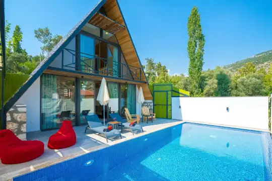 Villa Vural, Kalkan İslamlar'da doğa içinde konumlanmış, şirin bir mimariye sahip, balayı çiftleri için ideal bir seçenektir. 2 kişi konaklama kapasitesine sahip olan bu villamız, açık plan salon mutfak ve üst katta çift kişilik yatak odası ile jakuzi sunmaktadır. Havuz terası, korunaklı bir şekilde tasarlanmıştır, böylece dışarıdan görünmez ve balayı çiftleri huzur içinde tatillerini geçirebilirler.