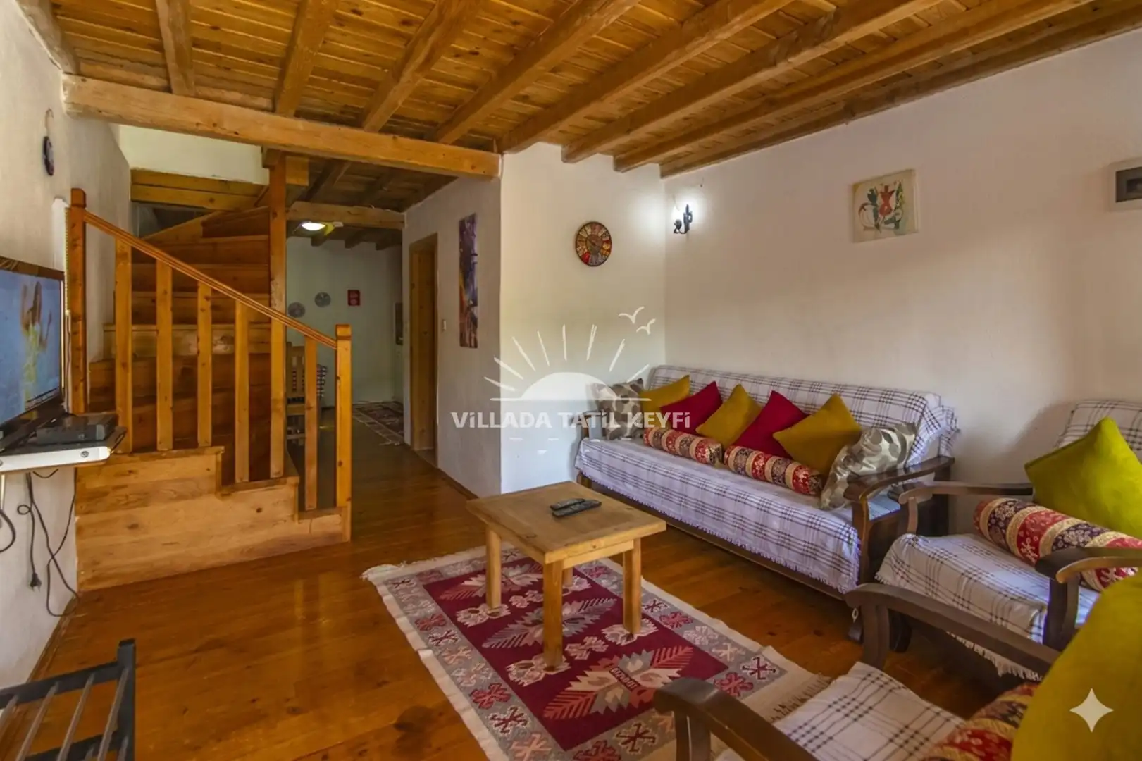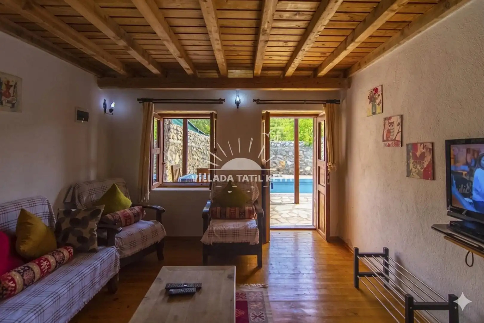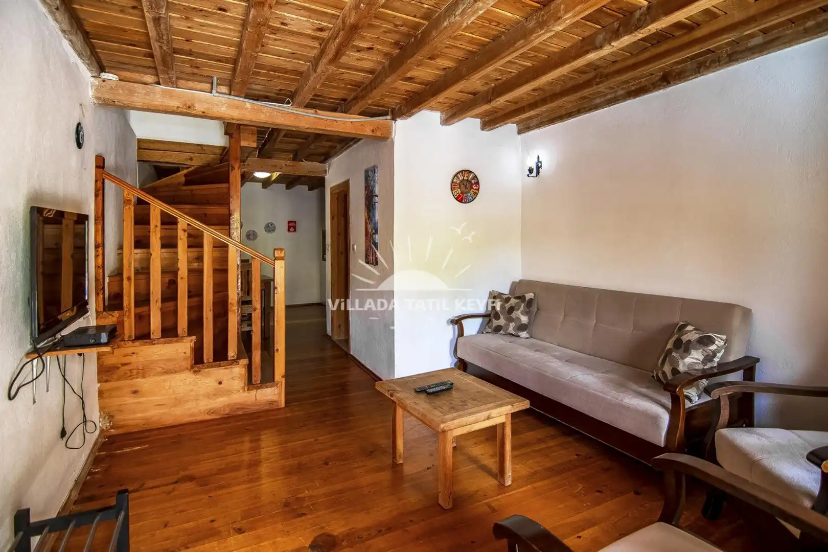 Fethiye'nin tarihi ve doğal güzellikleriyle ünlü, villa tatil turizmi ile dikkat çeken Kayaköy'de yer alan dubleks, 2 yatak odalı ve 4 kişilik kapasiteli Villa Nilay Evi, özel havuzuyla dikkat çekmektedir. Taş mimari ve doğal yapısı sayesinde içerisi oldukça serin ve ferah bir atmosfere sahiptir. Villa içerisindeki yatak odaları klimalıdır, ancak salonda klima bulunmamaktadır. Araçsız tatil yapmak isteyen misafirler için ideal olan villamız toplu taşıma araçlarına yürüme mesafesindedir. Bahçe alanı ve havuz terası taş duvarlarla çevrilidir ve dışarıdan görünmemektedir, bu nedenle muhafazakar tatilciler, mutaassıp aileler ve balayı çiftleri için ideal bir tatil villasıdır.