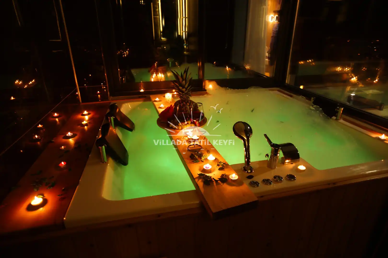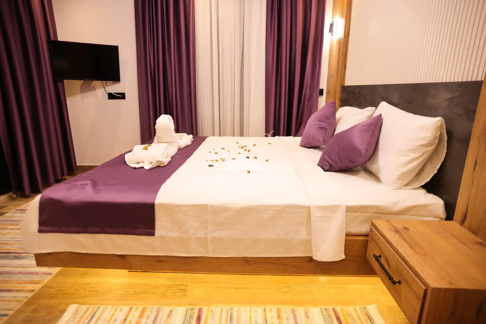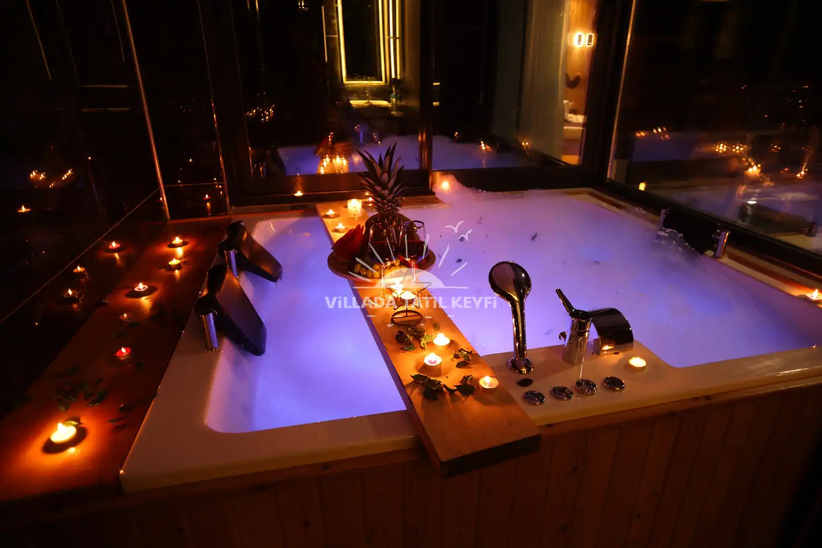 Çift kişilik yatak, jakuzi, klima, TV, komodin, geniş gardırop ve özel banyo/WC bulunmaktadır.
