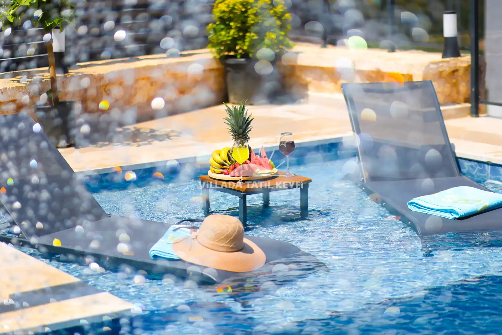 3 yatak odası ve 6 kişilik konaklama kapasitesine sahip olan Villa Belmora’da, size özel yüzme havuzu ve havuza entegre sığ havuz alanı bulunmaktadır. Doğa manzarası eşliğinde keyifli anlar yaşayabilir, jakuzili odada günün yorgunluğunu atabilirsiniz.